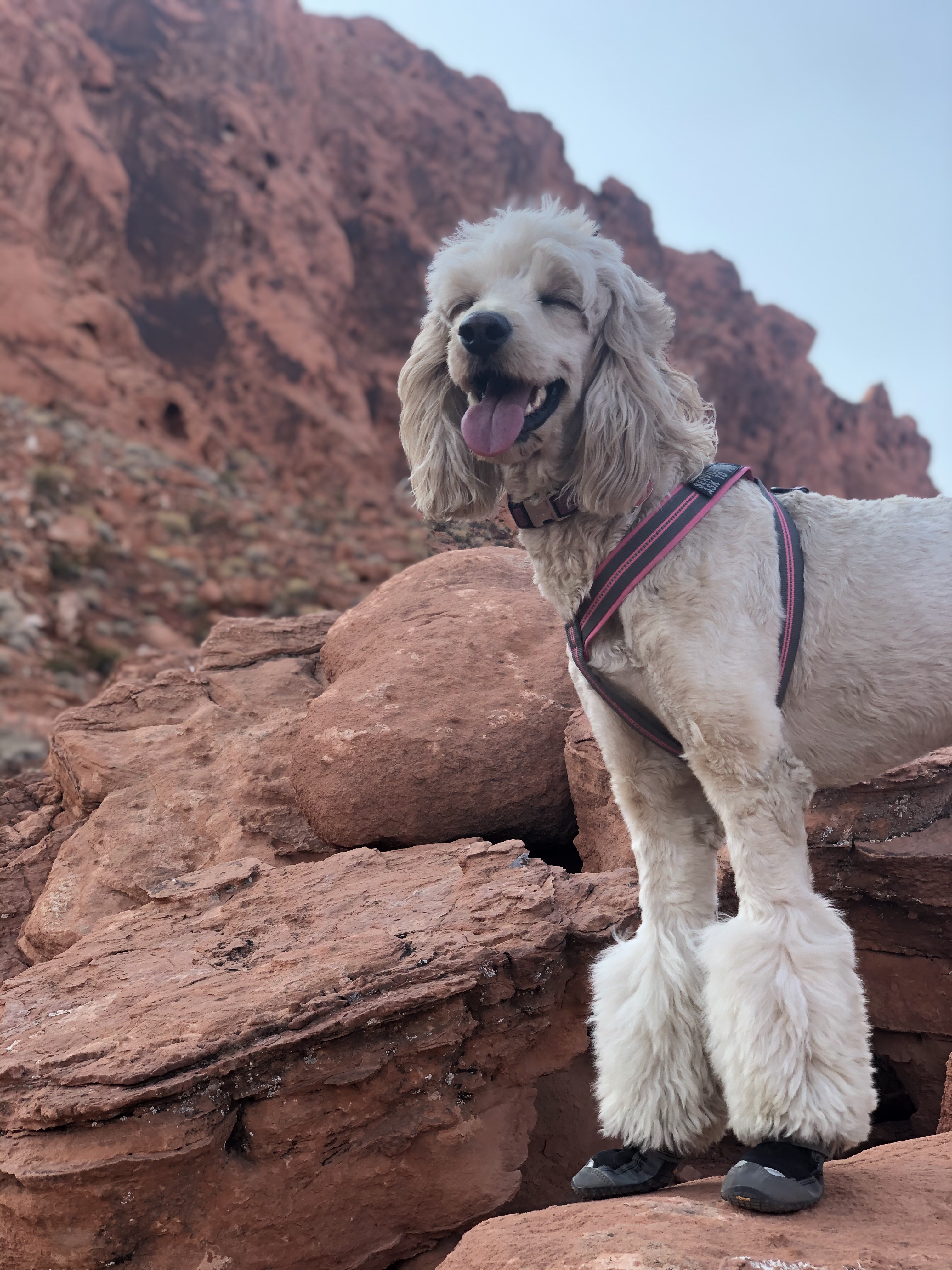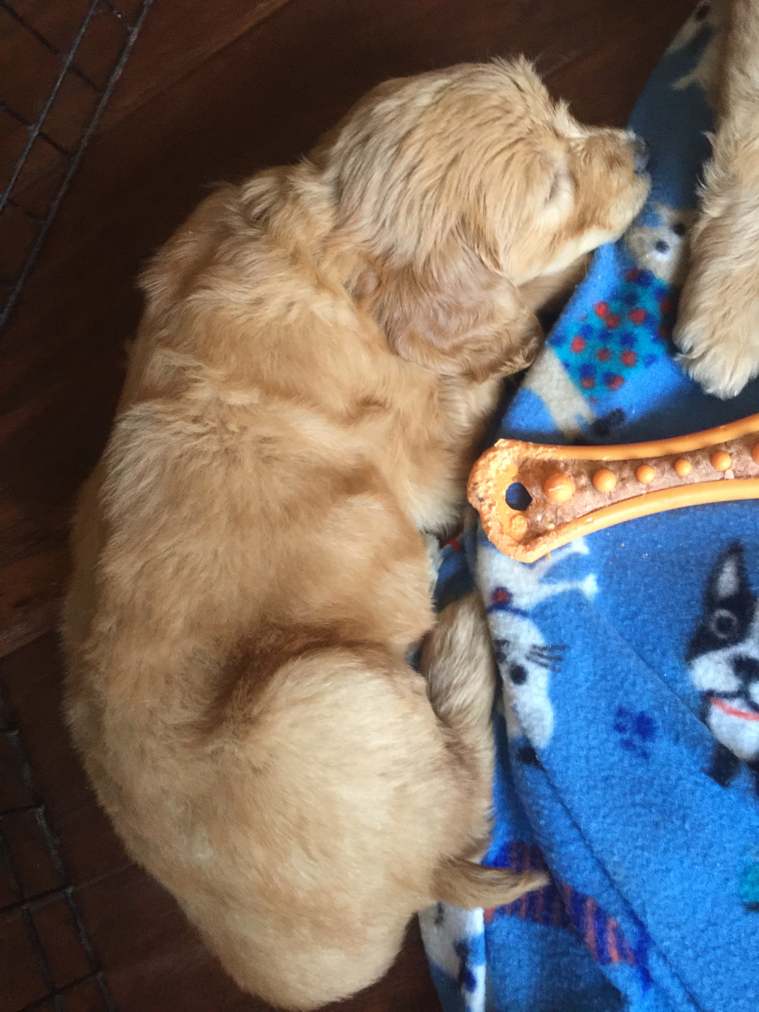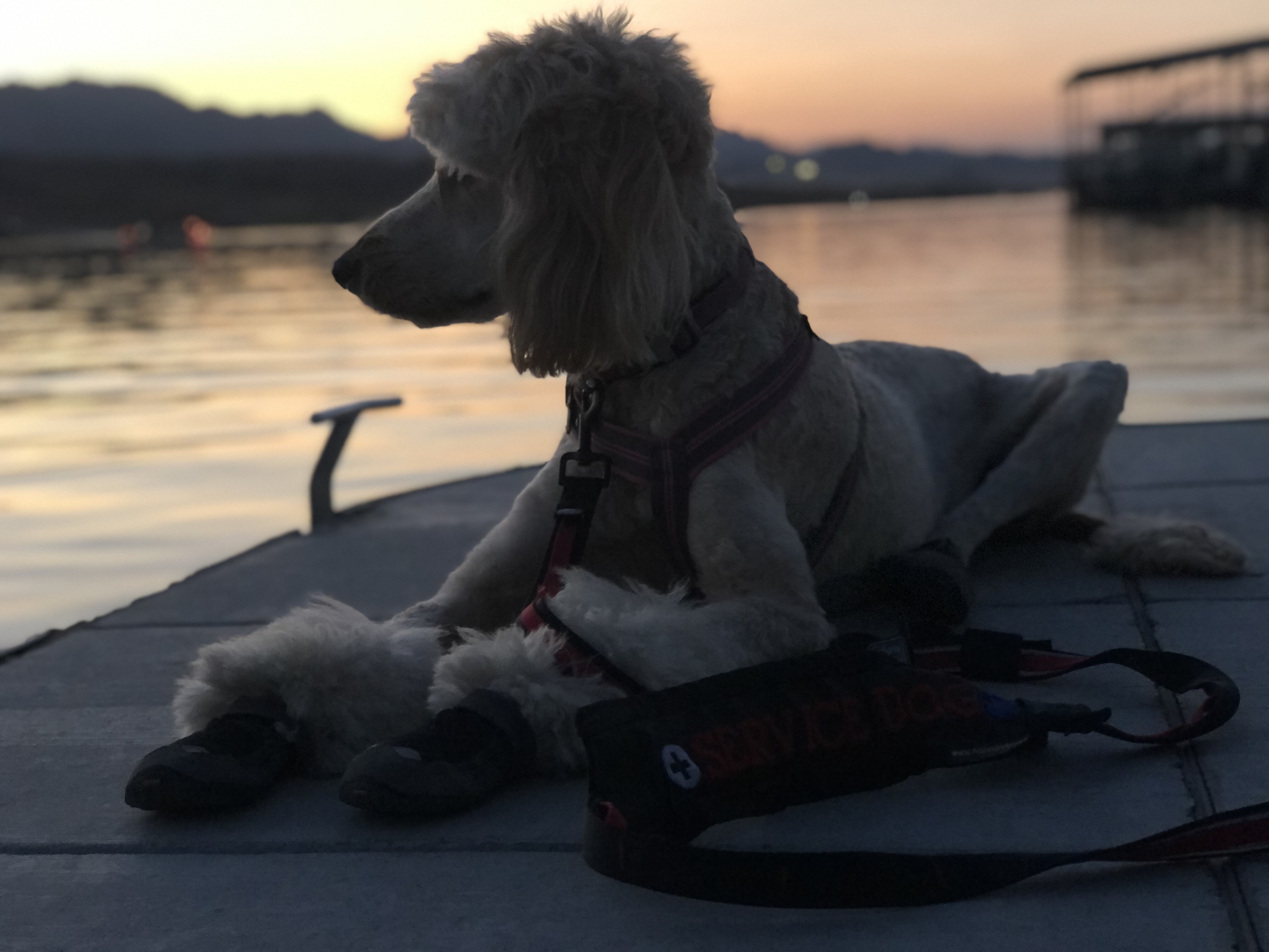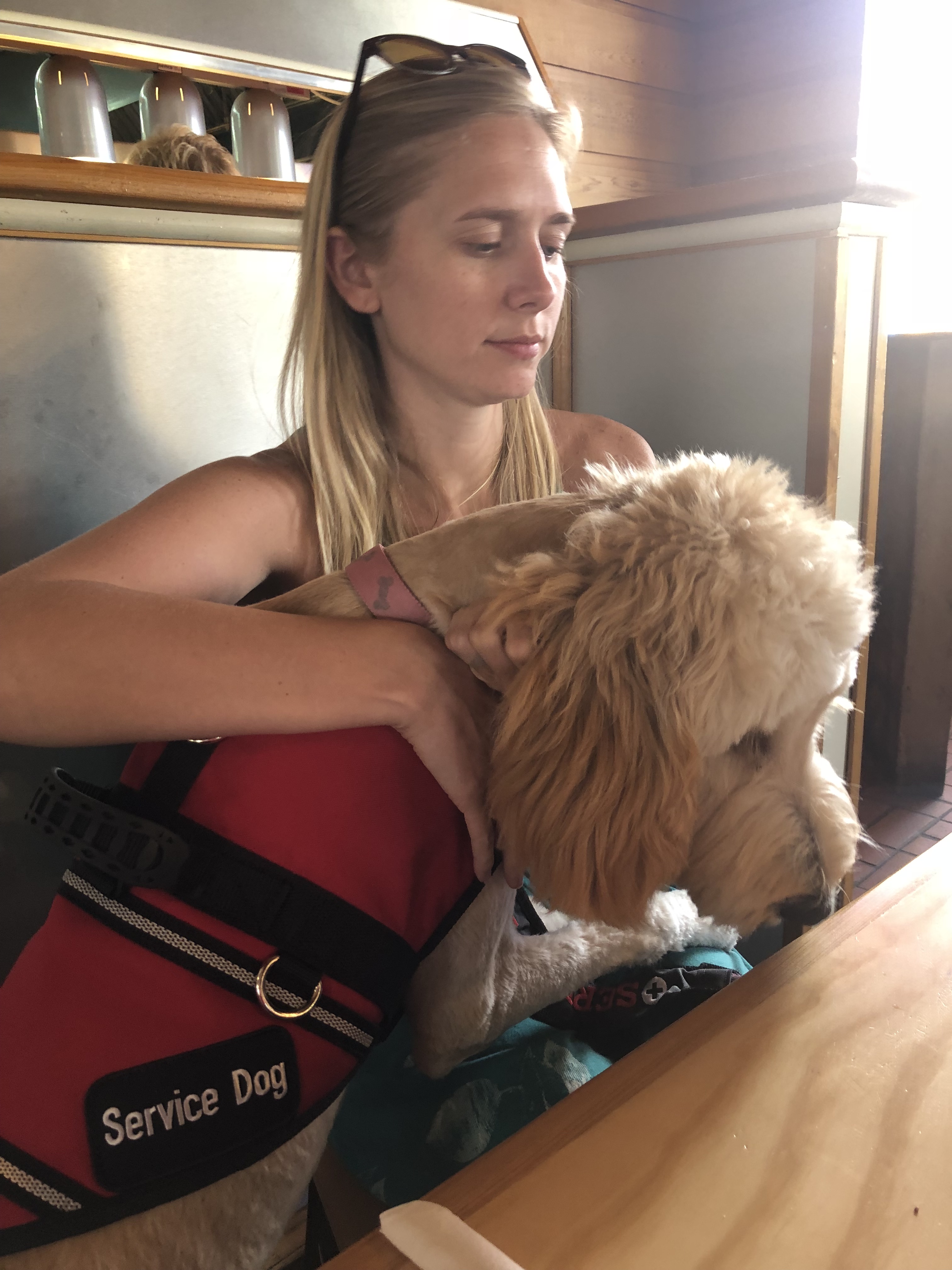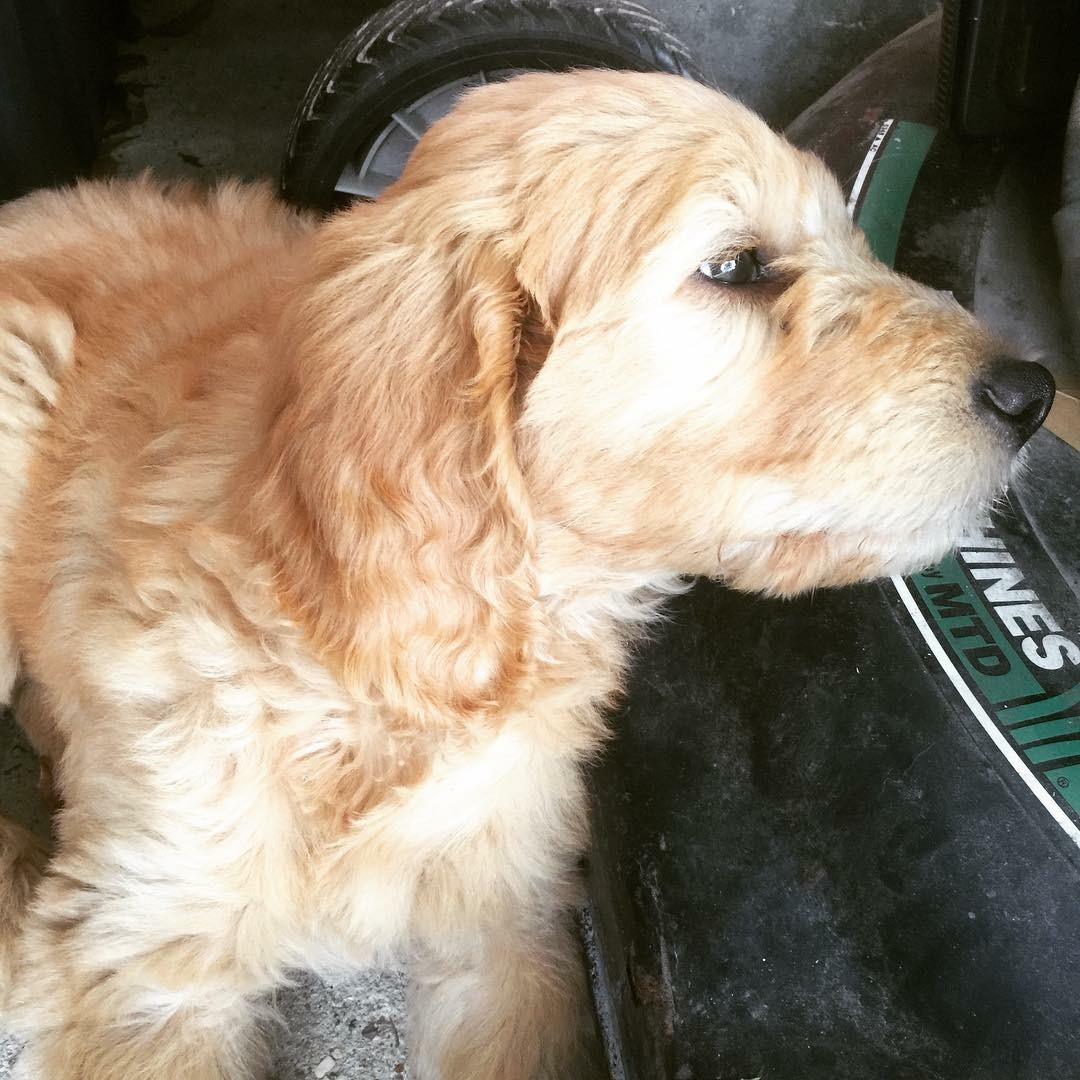 Xena, my goldendoodle, is a 50/50 golden retriever and poodle breed. She was a recommended breed to me when I was in the market for a service dog, very smart. The maintenance needs of this breed should not be underestimated! I was mislead to believe this was the breed to choose and while I love my bitch to pieces I do not see myself getting another doodle for assistance animal work.