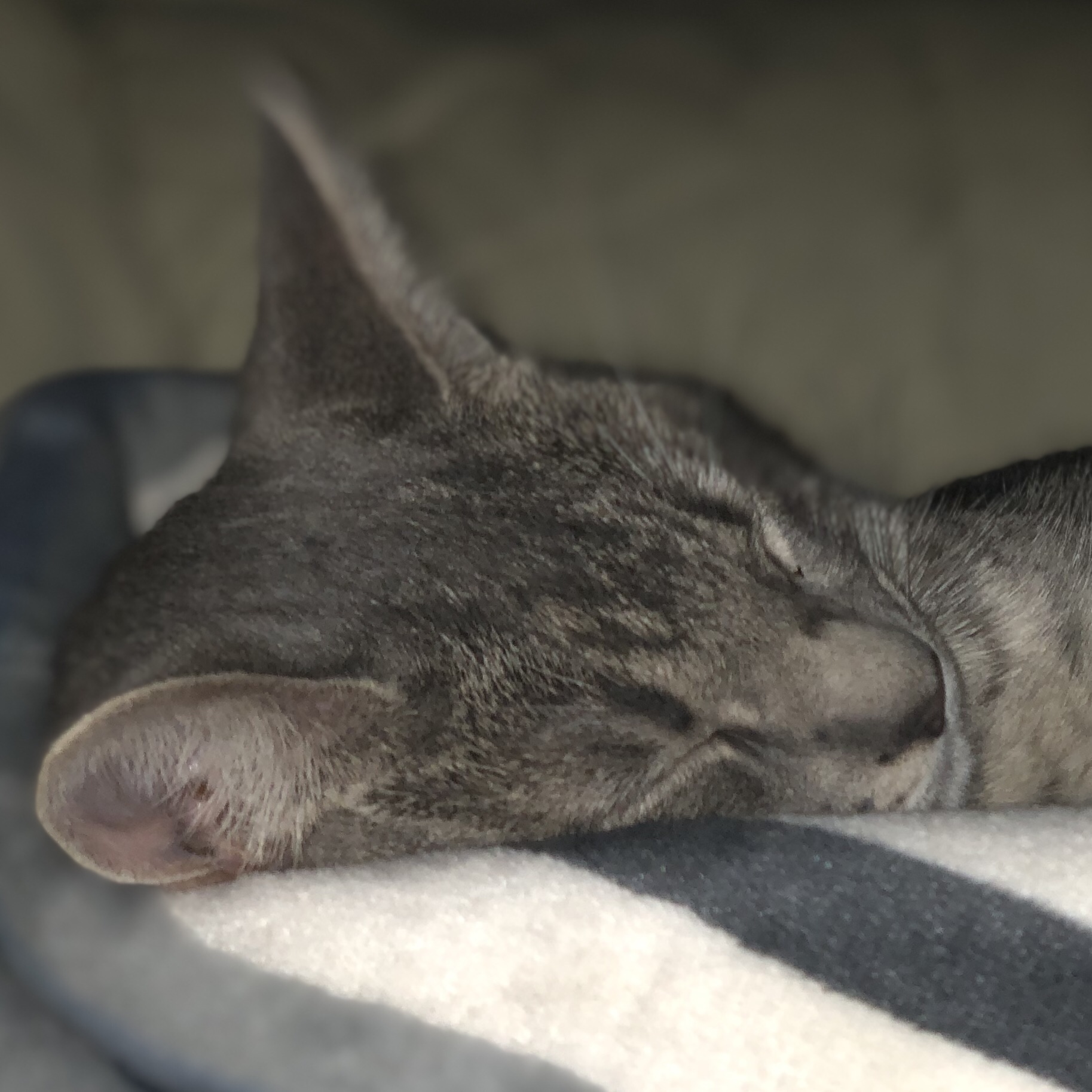 Juno is a domestic short haired cat with gray tiger stripes and the attitude of a lioness. She’s wanted to be a domestic cat all her life. When we lived in the country she roamed the property with an orange tabby cat named Nacho. They did not get along overall, she was always hiding out on the patio. Nacho is a natural hunter and he’d attack Juno—he’s still in the country and we’ve moved to the city now.